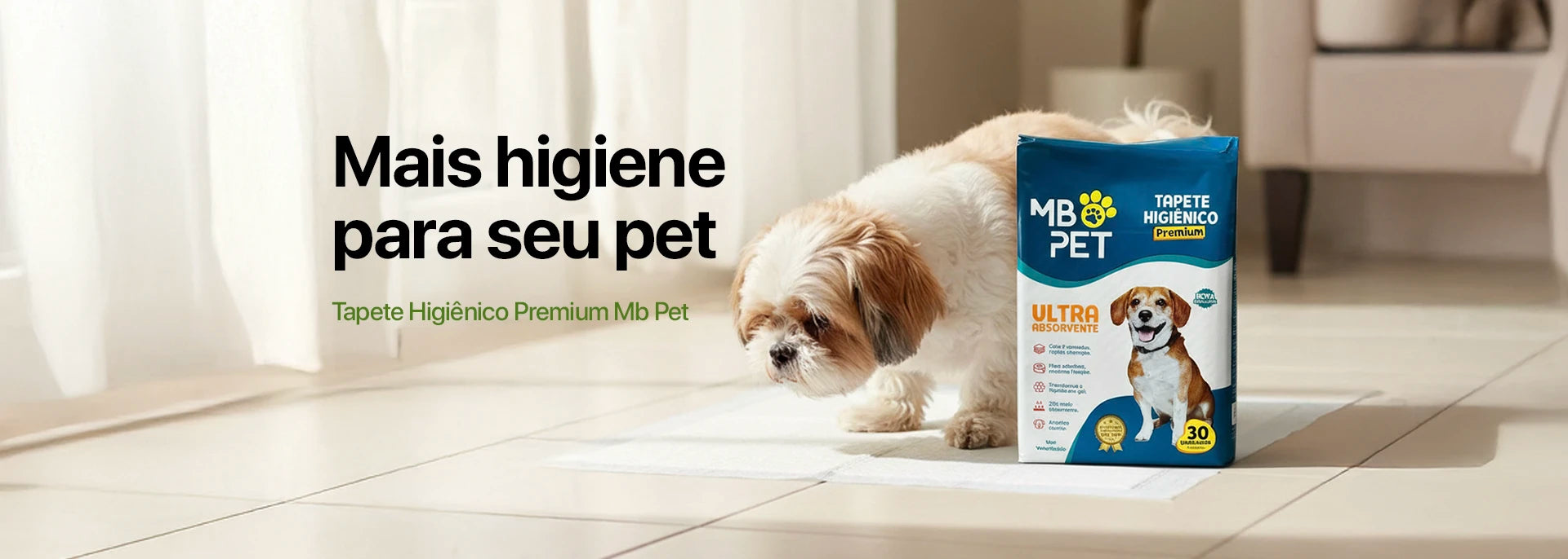 Kit 30 Tapete Higiênico 80x60cm Mb Pet Ultra Absorvente 5 Camadas